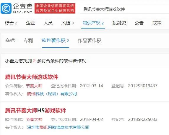 公开资料显示,《节奏大师》由腾讯发行,光速工作室开发,后者是现在的光子工作室的雏形。企查查APP显示,腾讯关联公司曾于2011年11月申请多个“节奏大师”相关商标,国际分类涉及教育娱乐、设计研究、科学仪器等。同时,腾讯曾于2012年3月14日登记“腾讯节奏大师游戏软件”软件著作权。