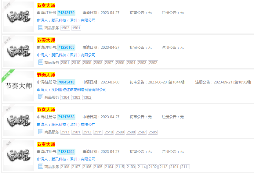 今年来,想必是为《节奏大师》的回归做准备,4月27日,腾讯又集中申请了8件“节奏大师”相关商标,保障《节奏大师》的商标权益。