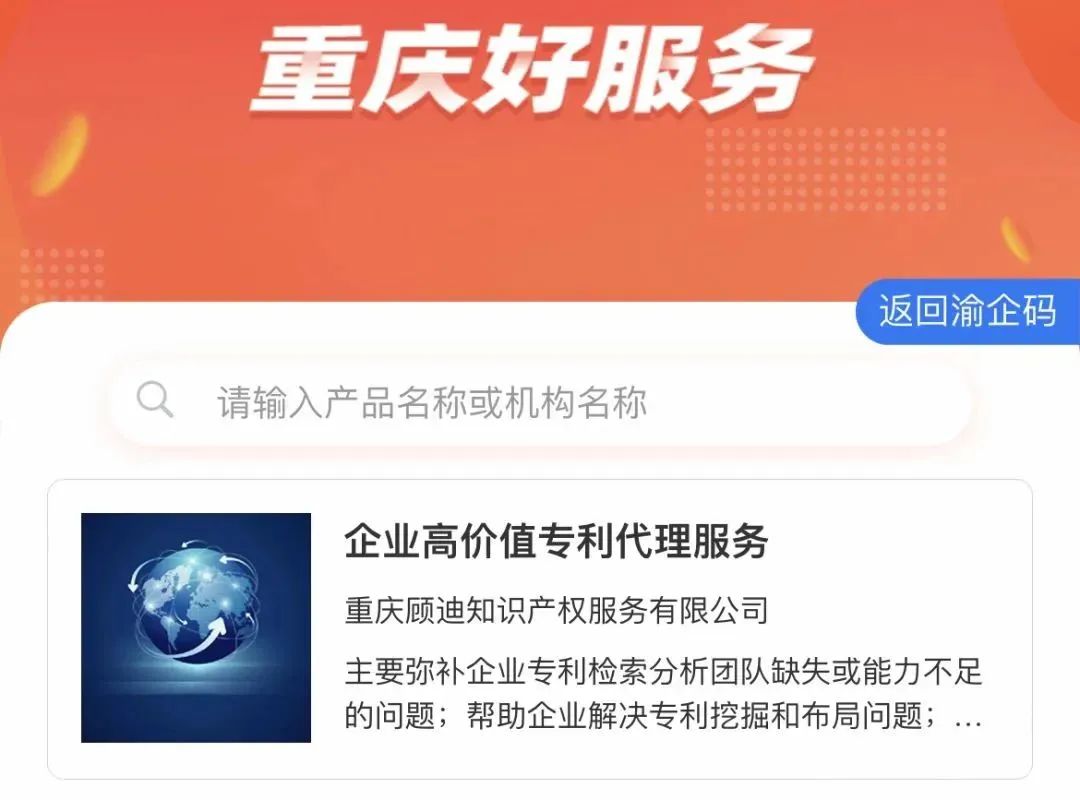 11月30日,由重庆市经济和信息化委员会指导,重庆市中小企业发展服务中心主办的首批“重庆好服务”评选活动落下帷幕。顾迪平台“企业高价值专利代理服务”荣登榜单。