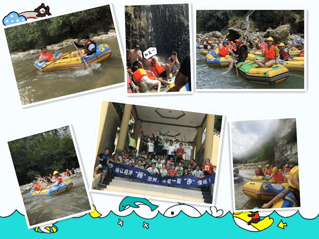 为感谢顾迪小伙伴们的辛勤劳动、为营造团队精神、更为了增加员工的幸福感,每年夏天我们都会组织一次水上活动,让公司的小伙伴们在炎热的夏天能远离空调尽情的游玩一夏。当小伙伴们乘坐橡皮艇,随波谷浪尖漂流而下;当绿水亲吻肌肤,幽峡灌醉双眼;当碧潭撩起童心,暗河荡起梦幻,城市生活的疲惫与沉闷,将挥之一去,顷刻间活力再现。