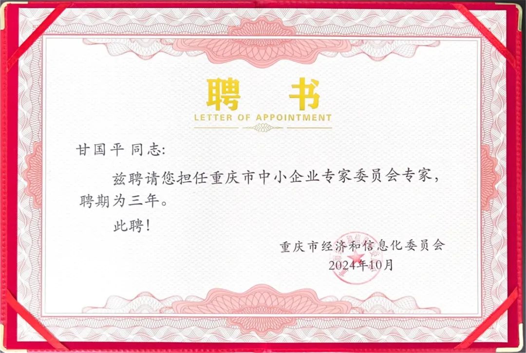 会上,顾迪集团联合创始合伙人甘国平受聘为重庆市中小企业专家委员会专家。