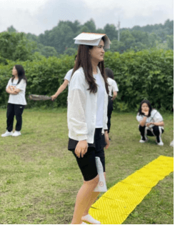 首先开展的是热身游戏“一块、一块五”一个小小的热身游戏小伙伴们都极力的奋战,充分的体现了小伙伴们的积极性。其次开展的是头顶书腿夹纸走指压板接力的游戏,即将进入活动氛围的高潮,游戏以8个人一组,分为8个组,每次两个小组同时进行,互相竞赛,这个游戏需要小组成员相互配合传递,认真努力,做好自己的本职,用时最短的一方获取最高的分值,而良好的团队配合是制胜的法宝。指压板传递的活动,既锻炼了身体又增加了团队协作的精神,互帮互助,同时也让小伙伴们感受到了合作与沟通的重要性。
