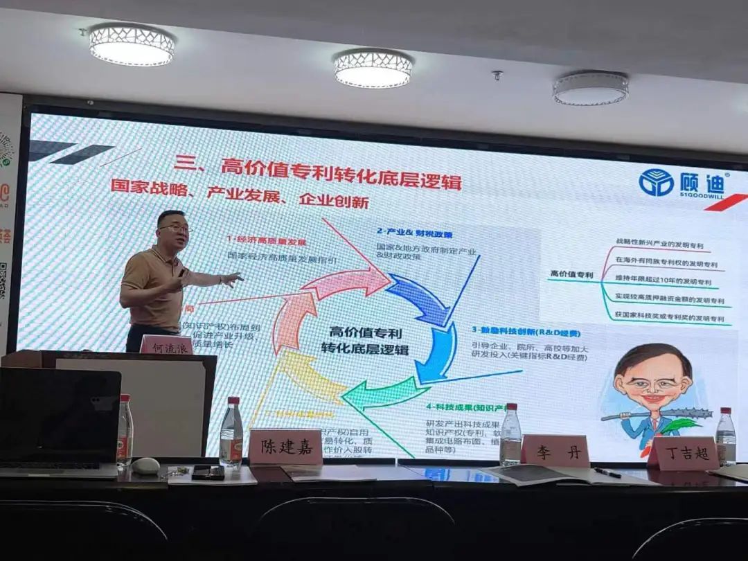 19日,顾迪集团联合创始人何流浪在重庆市企业人才发展研究会、重庆市知识产权投融资促进会共同主办《专利转化促进项目培训班》上进行《从创新到商业:知识产权转移转化实务》主题分享。内容包含科创转化应用方式,质押融资、作价入股、产品备案、绩效目标等丰富、实用的解析。