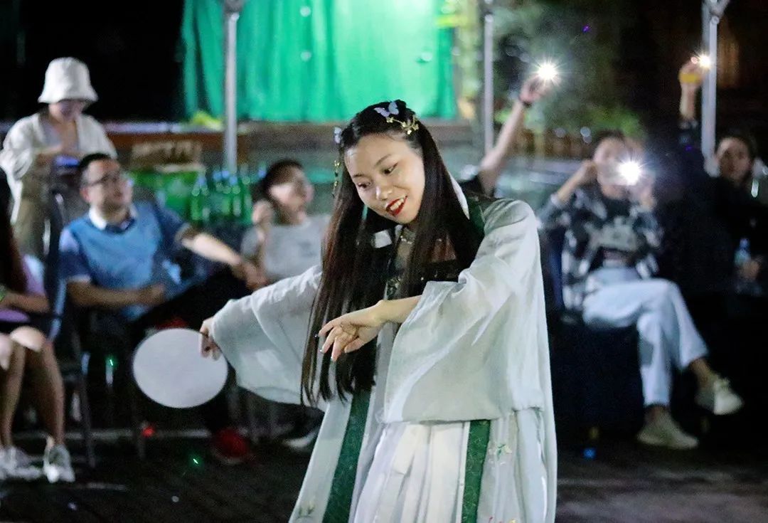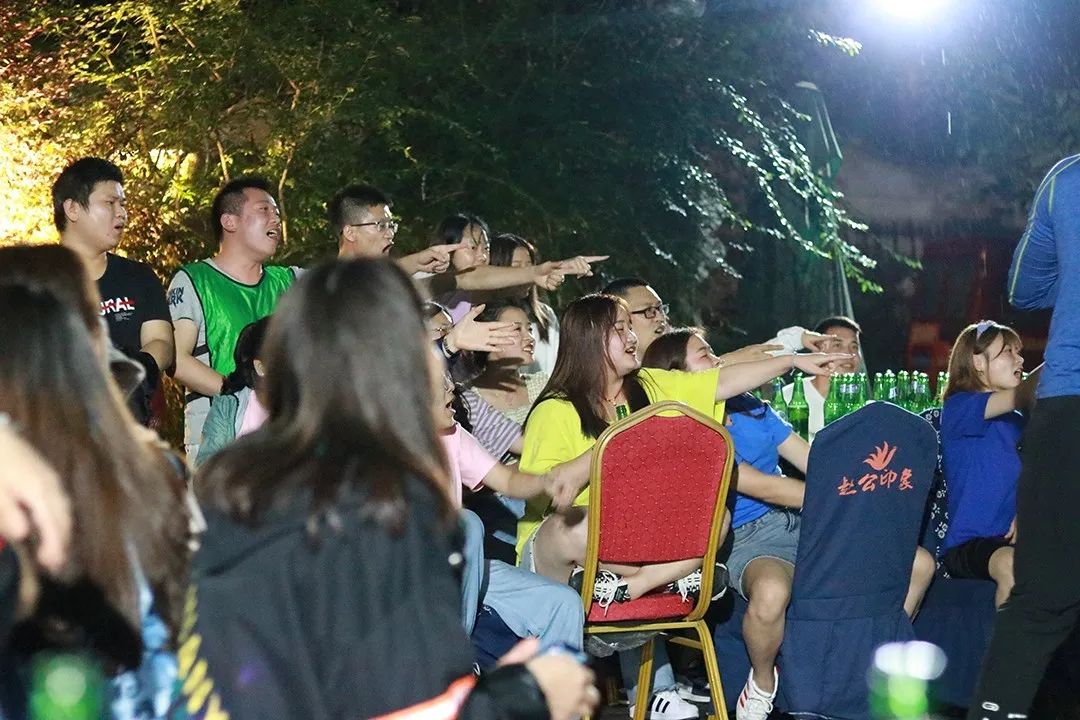 美食环节之后,热闹的篝火晚会开启,小伙伴们积极的表演节目,为晚会增添一丝愉悦~