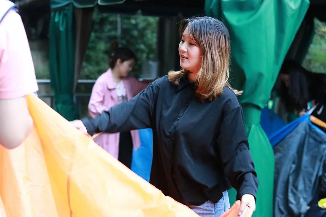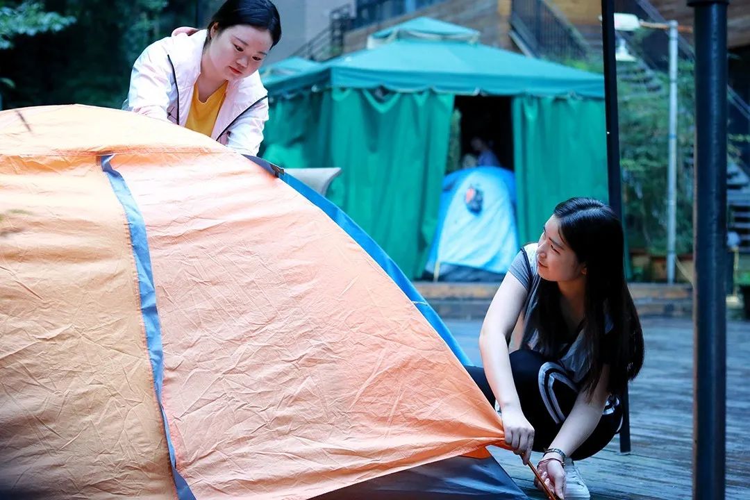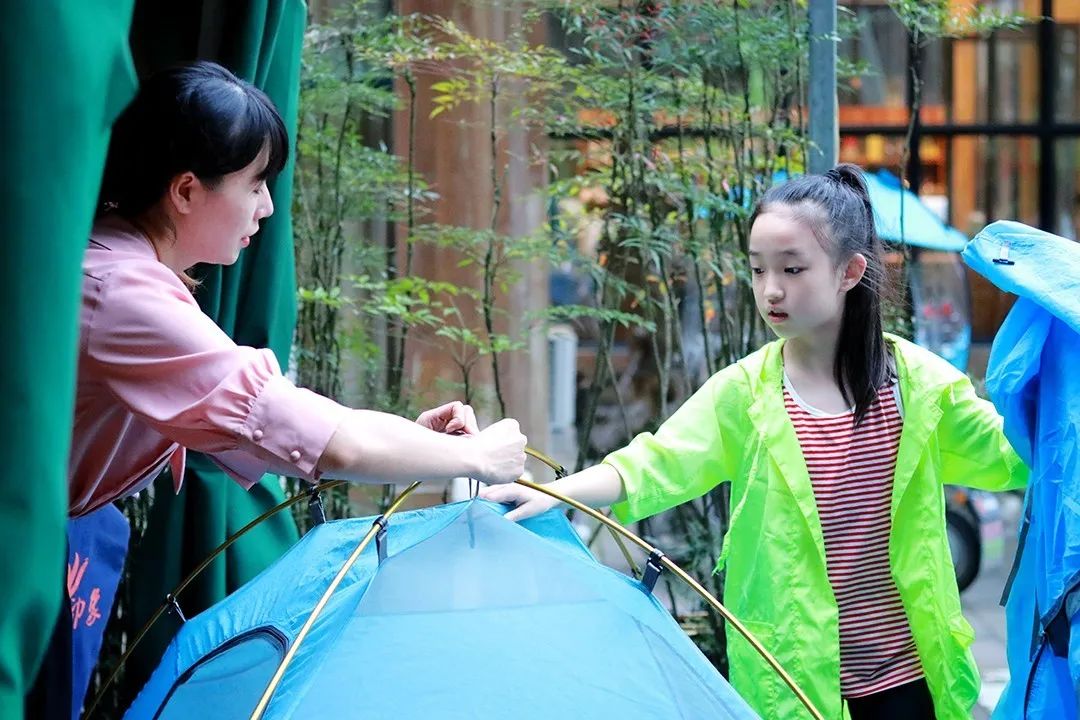 大家兴致勃勃搭建帐篷,奇趣无穷。
