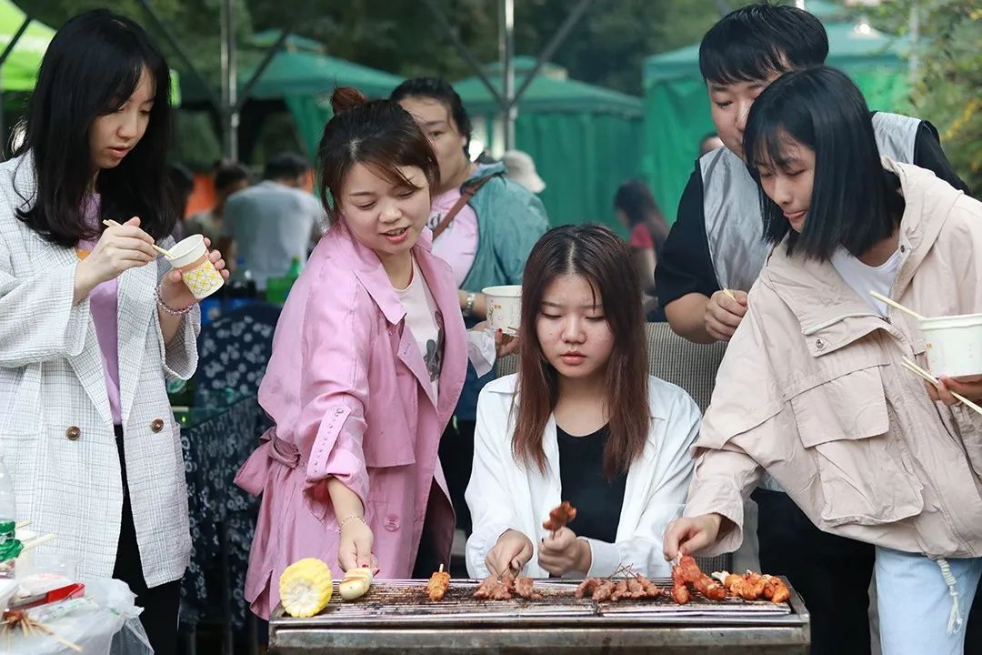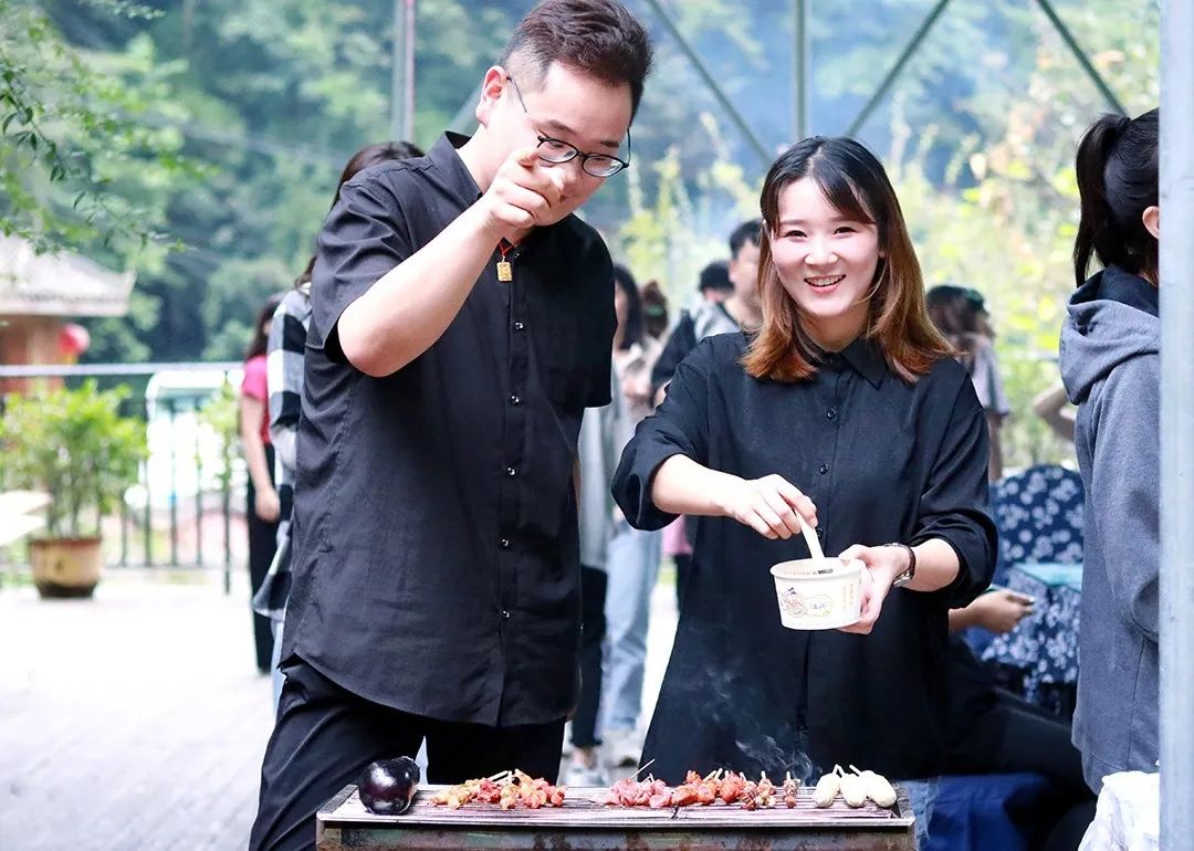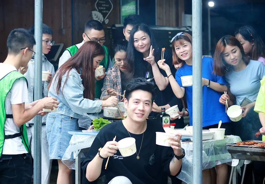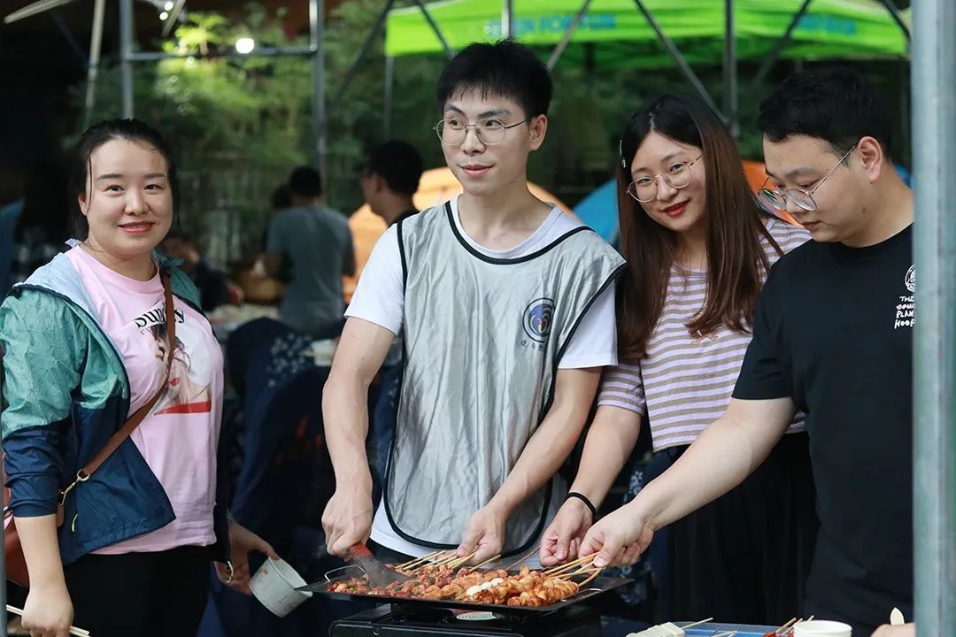 大家一同品尝烧烤食物,在美味中谈笑风生,并结群围在一起畅聊、玩小游戏~