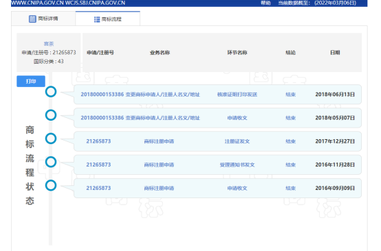 据查,原告已成功注册多件“Heytea”、“HEYTEA”“INSPIRATIONOFTEA”商标,目前这些商标均在有效期内,其依法享有对这些商标在核准使用的商品/服务项目上的独占使用权利。