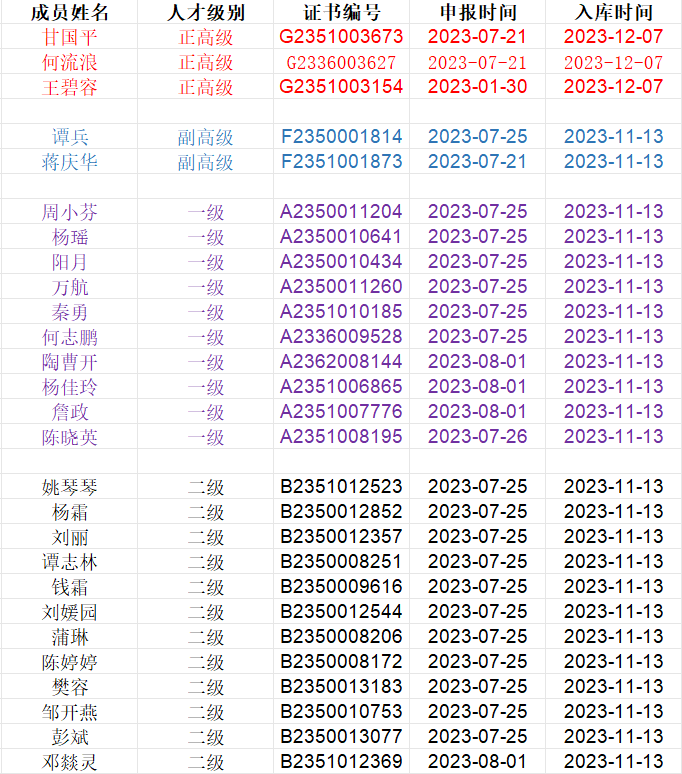 (正高级3人,副高级2人,一级10人,二级12人)