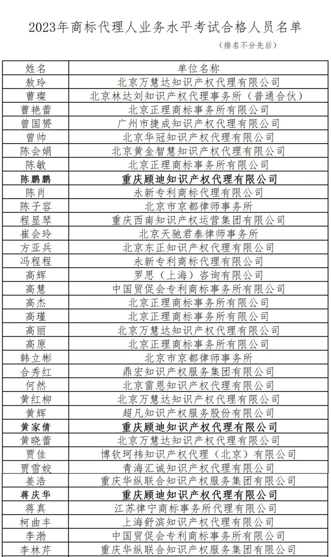 由中华商标协会主办的2023年商标代理人业务水平考试于10月20日-22日在北京、重庆同时举行。我司陈鹏鹏、黄家倩、蒋庆华成功通过此次业务水平考试。