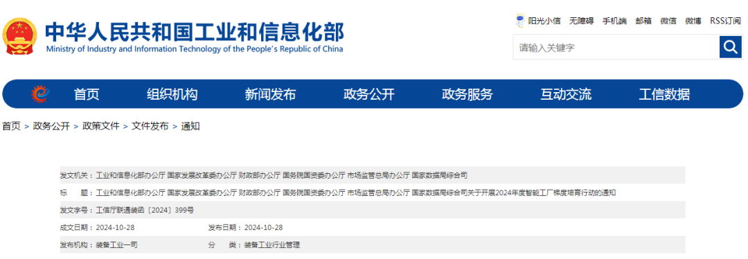 工业和信息化部办公厅 国家发展改革委办公厅 财政部办公厅 国务院国资委办公厅 市场监管总局办公厅 国家数据局综合司关于开展2024年度智能工厂梯度培育行动的通知