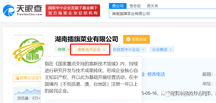 不能忍,不能忍!据天眼查网站显示,央视曝光的湖南插旗菜业居然还是高新技术企业!