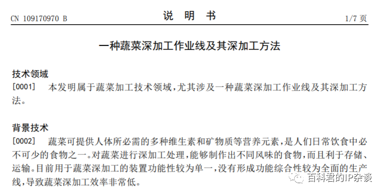 以最新授权公告的一件专利为例,发明名称为“一种蔬菜深加工作业线及其深加工方法”。