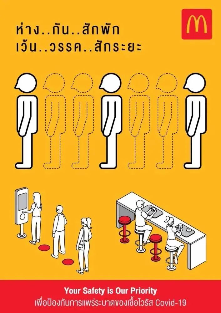 原来,这是麦当劳以幽默的方式向公众宣传防疫的重要措施——保!持!距!离!