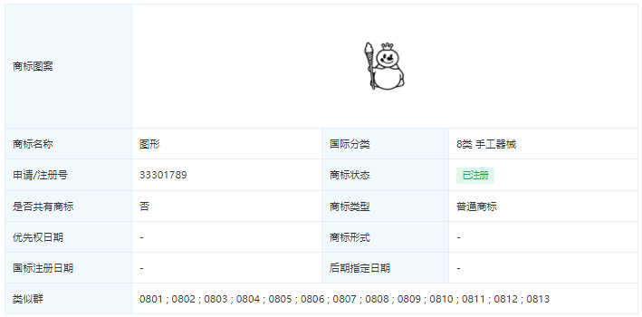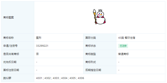 蜜雪冰城股份有限公司此前已经申请注册了雪王图形商标,商标图案是黑白色的。