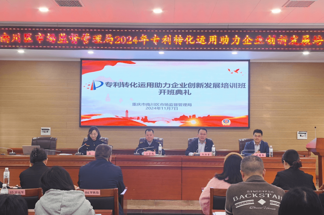 11月7日,由南川区市场监管局主办的“专利转化运用助力企业创新发展培训班” 正式开班,此次培训为期三天,重庆市知识产权局相关领导、南川区市场监管局主要领导和行业专家出席开班典礼。