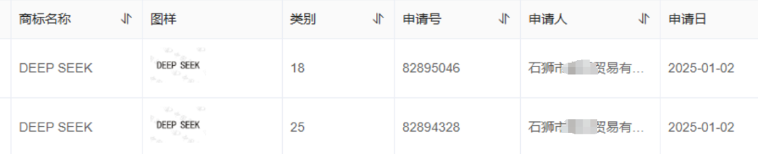 从申请注册的类别来看,这些商标主要集中在第9类科学仪器、第42类科技服务等商品和服务上,但也有个别商标申请注册的类别为第25类服装鞋帽,这不禁令人疑惑,比如泉州石狮的这家公司,分别在18类(箱包)和25类(服装鞋袜)上申请了DeepSeek商标。