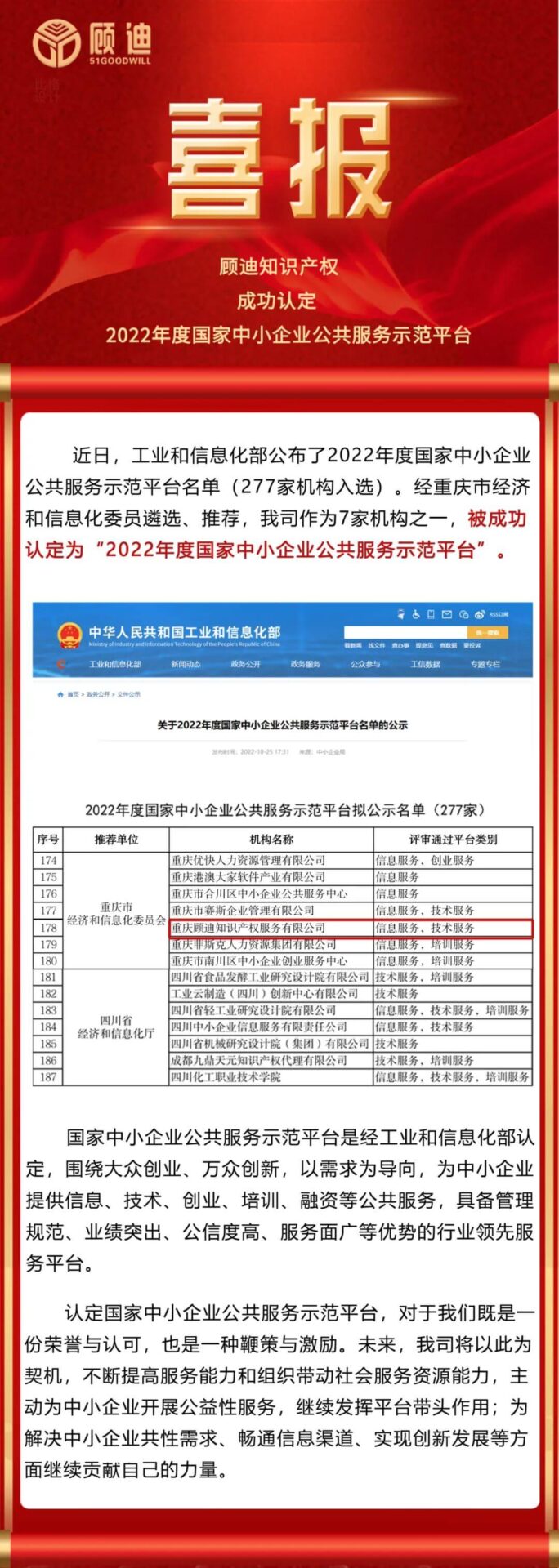 顾迪知识产权成功认定“2022年度国家中小企业公共服务示范平台”