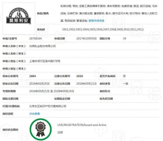 不过第30类“莫斯利安”商标,光明乳业在2015年才开始注册,这就导致了光明乳业在30类等商品上的商标纷争。