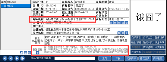 最终,商标局决定第43484291号“饿囧了”商标准予注册。
