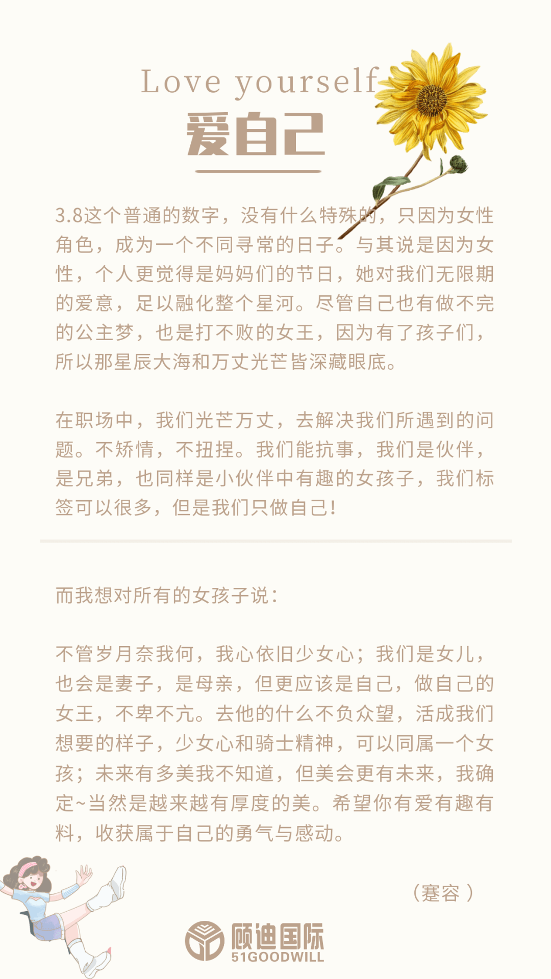 记住!你是女儿,是妻子,是母亲,但你首先是你自己,是独立的完整的自我,没有人能够随意给出定义。