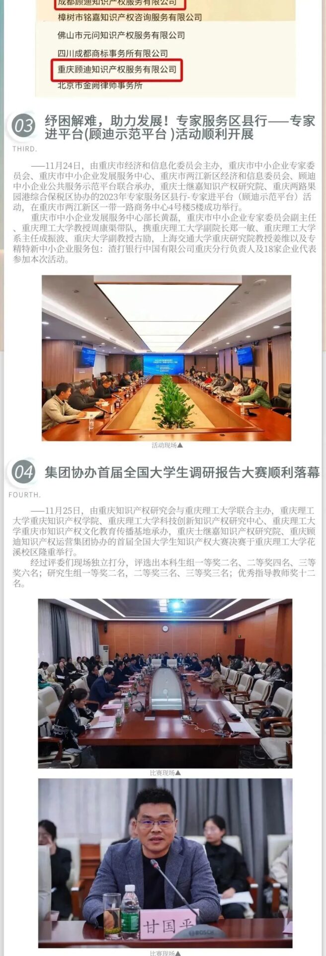 此外,顾迪还积极参加由市经信委、知识产权局、高等院校以及企业组织的多场活动与会议,充分体现了顾迪对于知识产权赋能企业发展、推动社会进步的坚定信念。现在,和小编一起回顾顾迪在这个月的精彩瞬间吧!