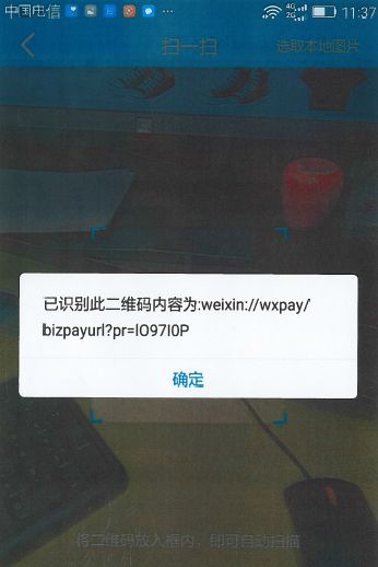 两原告发现,将“凡客诚品”购物网站提供给用户扫描的微信付款二维码图片进行解码,得到的字符串信息为:weixin://wxpay/bizpayurl?pr=IO9710P。(下图所示)
