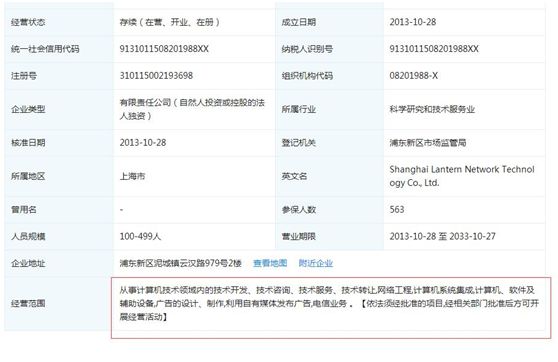 据了解,连尚公司于2013年10月28日注册成立,经营范围涵盖从事计算机技术领域内的技术服务、网络工程、广告的设计与制作、利用自有媒体发布广告等。